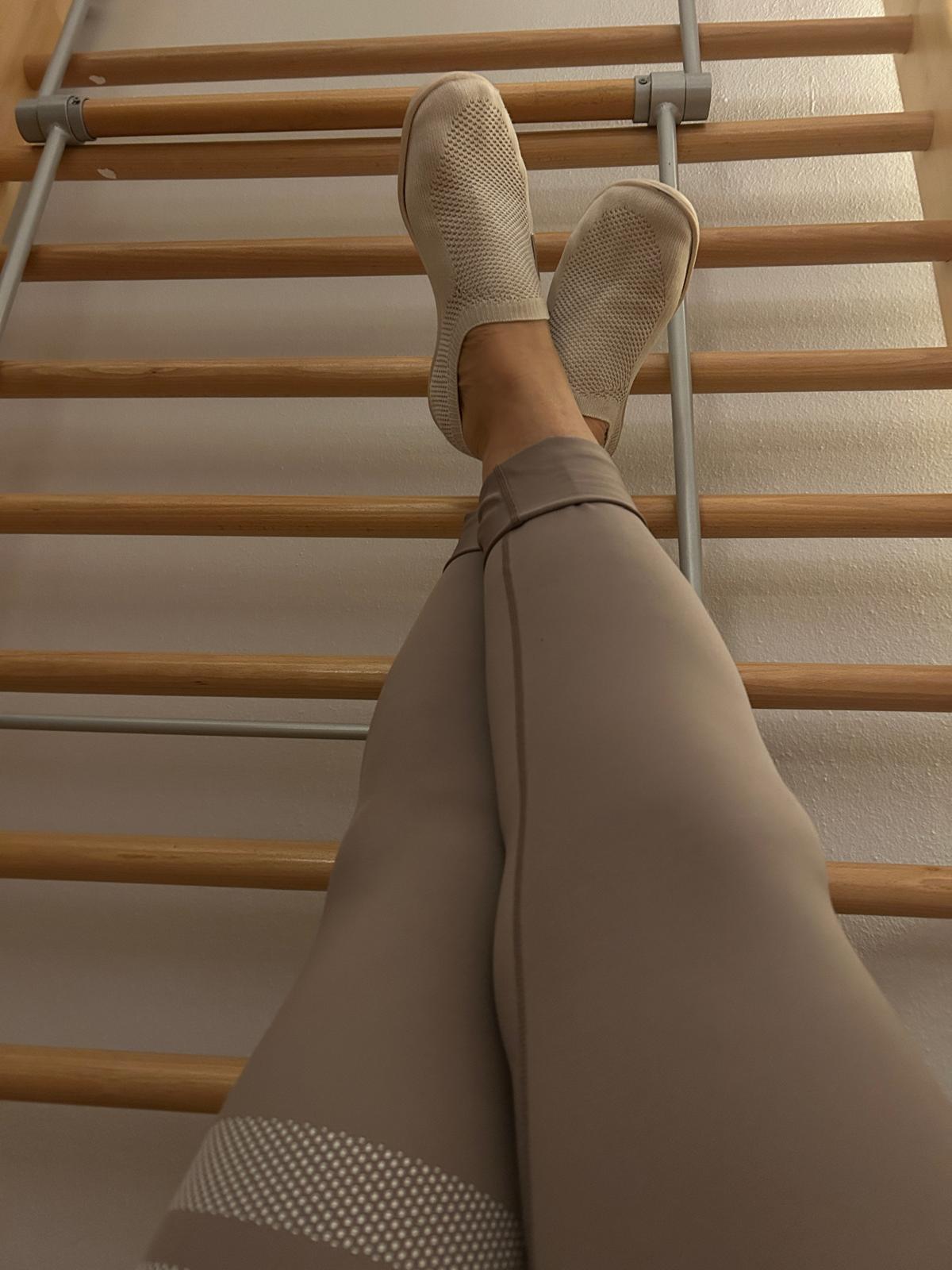 Täglich die Beine zur Decke strecken. Das wäre schon einmal ein Beginn, Beine und Füße wahrzunehmen. Dann noch Barfußschuhe tragen und richtig damit laufen lernen.