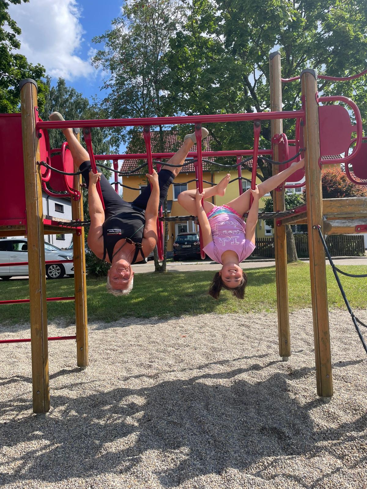 Klettern mit meiner Enkelin Sofia. Wir haben beide Spass. Sie nennt mich deshalb auch Partyoma. Mich macht das mächtig stolz